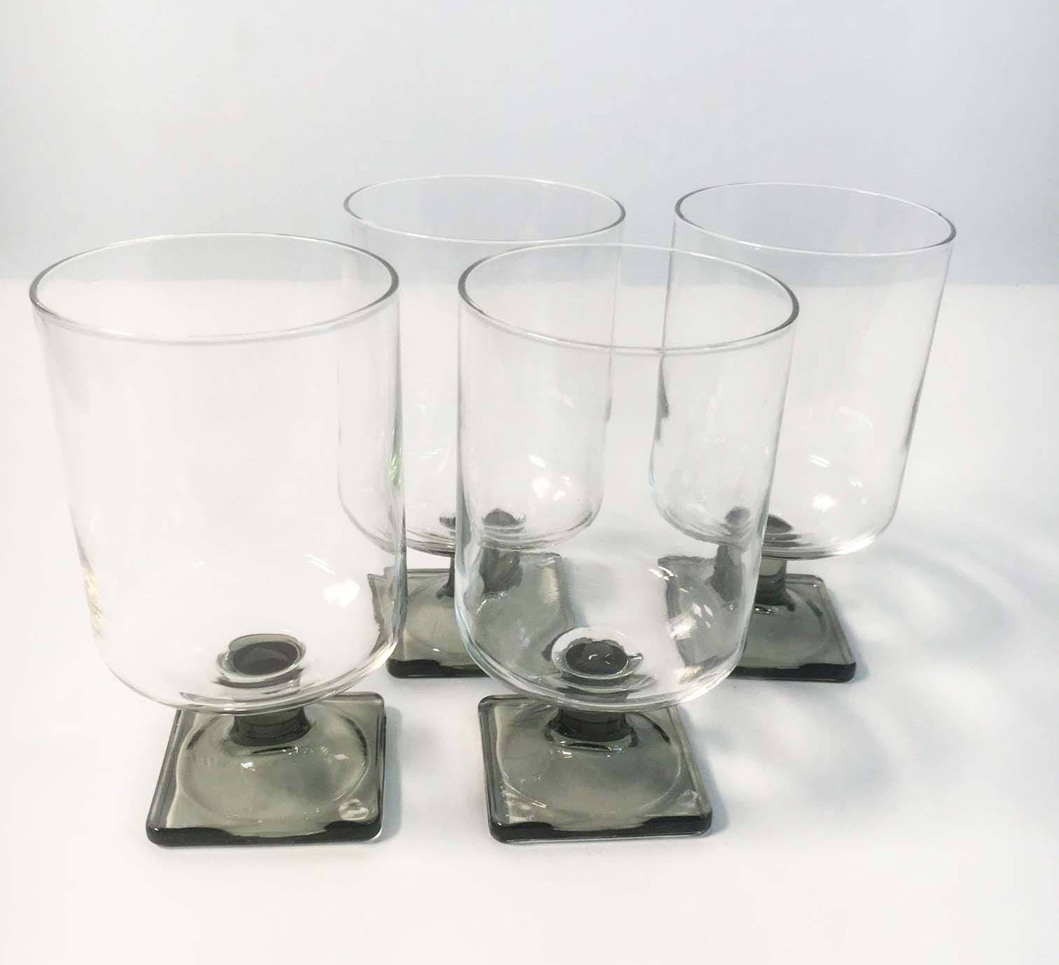 Vintage Federal Nordic Grey Wine Glasses - Set 4 Square Midnight Smoky